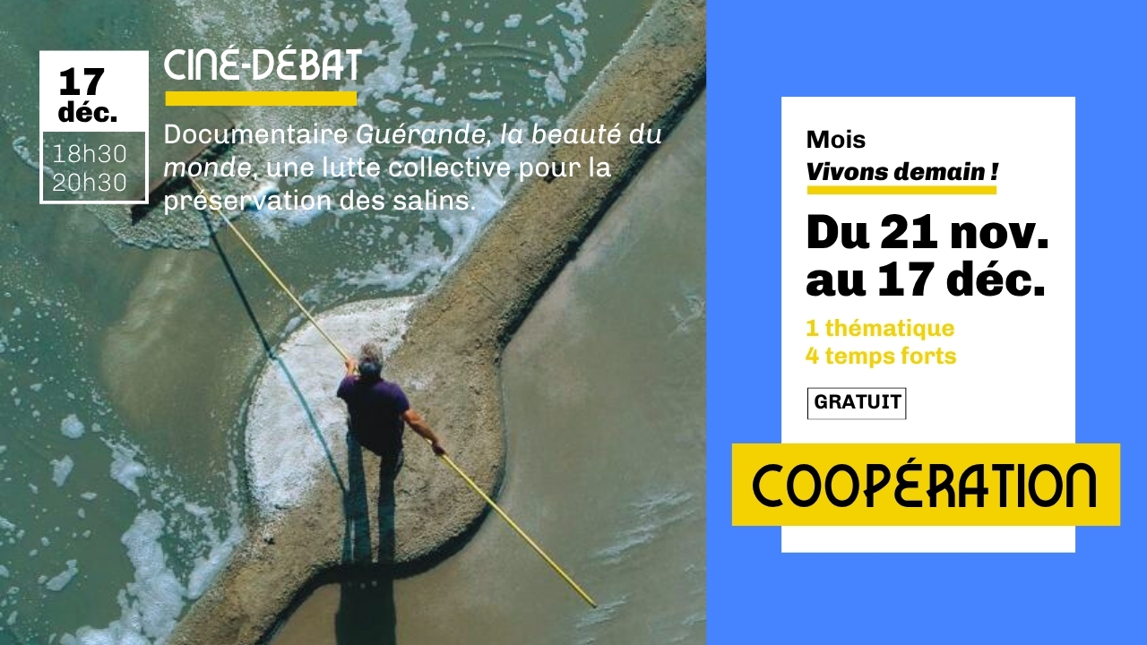 Pour clore le Mois Vivons Demain consacré à la coopération, nous t’invitons à un ciné-débat autour du film documentaire “Guérande, un peu de la beauté du monde”. Ce film retrace […]